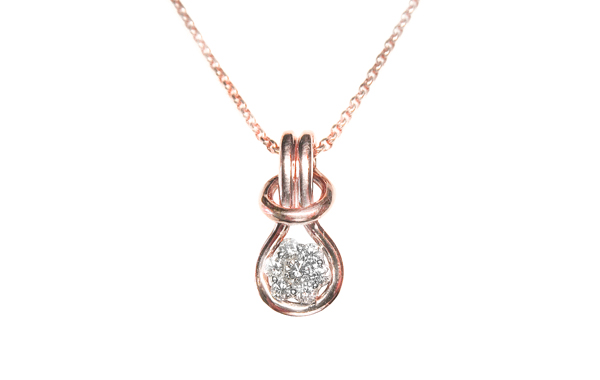 knot flower pendant/ exclusive design by A.J/ made of 18k rose gold/ totally handmade/ with round-cut diamonds