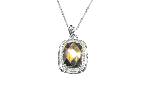 Checkered gold pendant/ with the inspiration of David Yurman design/ made of 18k gold/ with round-cut diamonds/ totally hand made